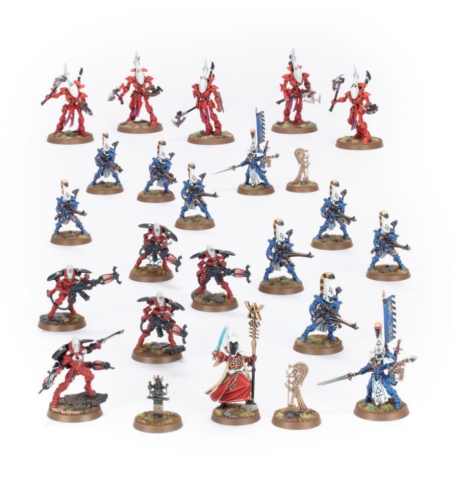 Esta caja contiene 24 miniaturas de plástico que representan una fuerza completa de los Protectores de Kygharil para usar en partidas de Patrulla de Combate de Warhammer 40,000. Es una forma ideal de comenzar un ejército Eldar o de ampliar fácilmente una colección existente, ahorrando dinero en comparación con la compra del contenido por separado.