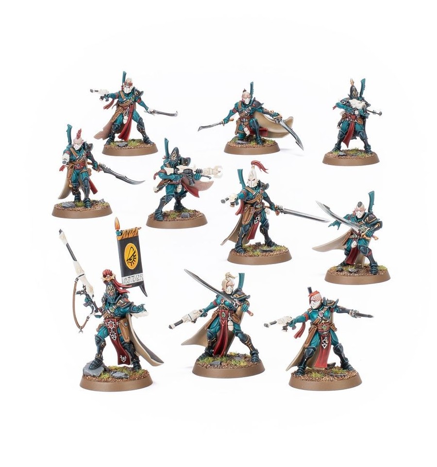 Estas miniaturas también pueden construirse como veteranos Corsairs marcados por el Vacío, hábiles asaltantes piratas con opciones para incluir varios operativos expertos.