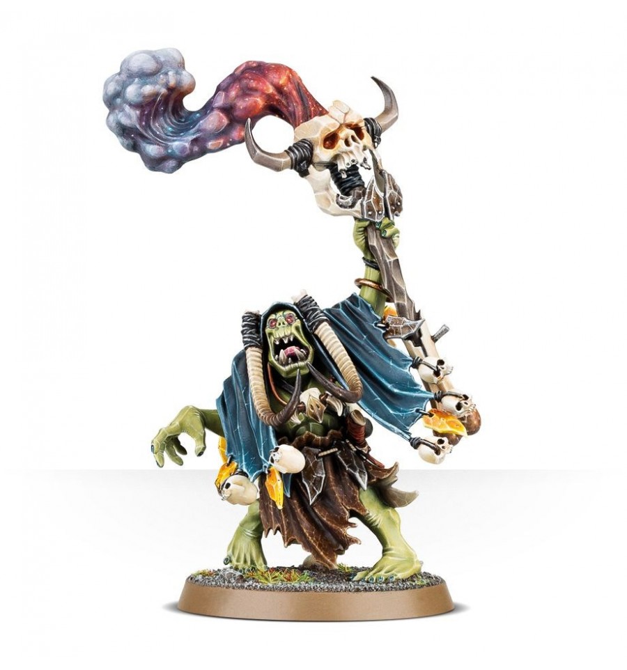 Salvajemente impredecible, salvaje, salvaje y violento, ¡Waaagh! la magia no puede ser controlada por nada que tenga ni una pizca de cordura. Afortunadamente, los Ironjawz no tienen muchos fragmentos de cordura entre ellos, y los menos destrozados son los Chamanes Weirdnob. Aparentemente nunca controlan verdaderamente sus propios cuerpos, ¡se retuercen, se retuercen y murmuran como Waaagh! los cursos de energía imparablemente a través de ellos, mirando a lugares que solo ellos ven y sin hablar con nada. Cuanto más grande es la reunión de Ironjawz alrededor de uno de estos extraños orruks, más grandes son los fuegos artificiales cuando todo comienza, ¡tal vez una explosión de Waaagh! la energía golpeará al enemigo como una ráfaga particularmente maloliente, o tal vez un enorme pie verde del tamaño de una montaña pateará a todo el ejército enemigo en la cara. ¡Nadie está exactamente seguro, y eso es la mitad de la diversión!