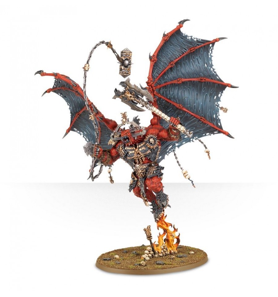 El Khorne Bloodthirster tiene 80 componentes y se suministra con una base Citadel de 120 mm x 92 mm.