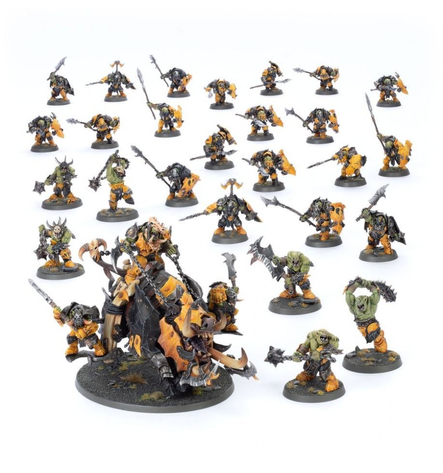 La enorme multitud de 20 Ardboyz con armadura pesada de esta fuerza de batalla está deseando entrar en acción! Los Weirdbrute Wrekkaz con armadura más ligera causan aún más estragos con su armamento, mientras que un monstruoso Maw-grunta carga directamente a través de las líneas enemigas.