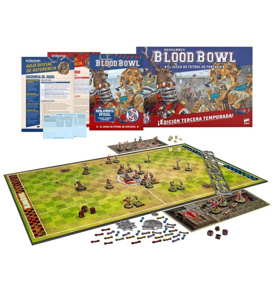 – 1 Blood Bowl: Reglamento oficial — Edición tercera temporada de 200 páginas y tapa dura que explica las reglas del juego, cómo organizar una liga y progresar con tu equipo, además de listas de equipo y perfiles de jugador