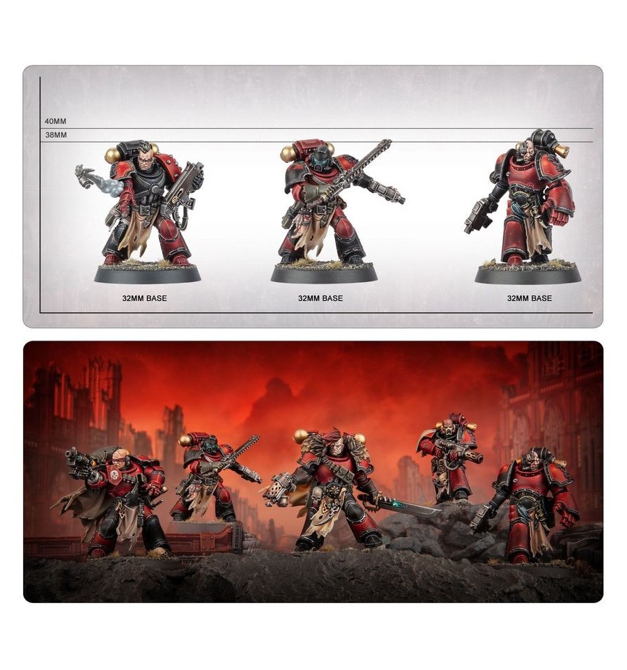 Uno de los Corsarios Rojos puede montarse como campeón opcional, armado con un lanzallamas de mano o una pistola bólter, y con la opción de dos cabezas: con casco o descubierta. Otro puede ser armado opcionalmente con un puño de energía, y también hay dos poses narrativas opcionales: lanzar una granada y apuntar cuidadosamente una pistola bólter. También hay armas y opciones de cabeza intercambiables, lo que facilita la personalización de tus guerreros saqueadores.