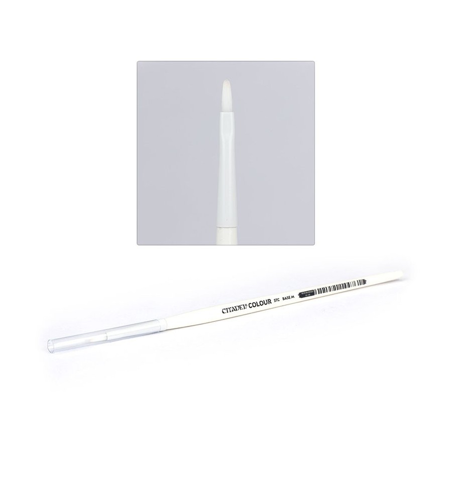 El pincel Citadel Colour STC M Base es el pincel perfecto tanto para aficionados nuevos como veteranos, con una cabeza más plana y curvada que te permite aplicar una capa suave y uniforme, ideal para las pinturas Citadel Base. Al girar el pincel hacia un lado, el borde estrecho es excelente para pintar líneas y detalles nítidos en tus miniaturas, lo que facilita más que nunca el resalte de zonas con textura y hace que tu pintura tenga un aspecto final impecable.