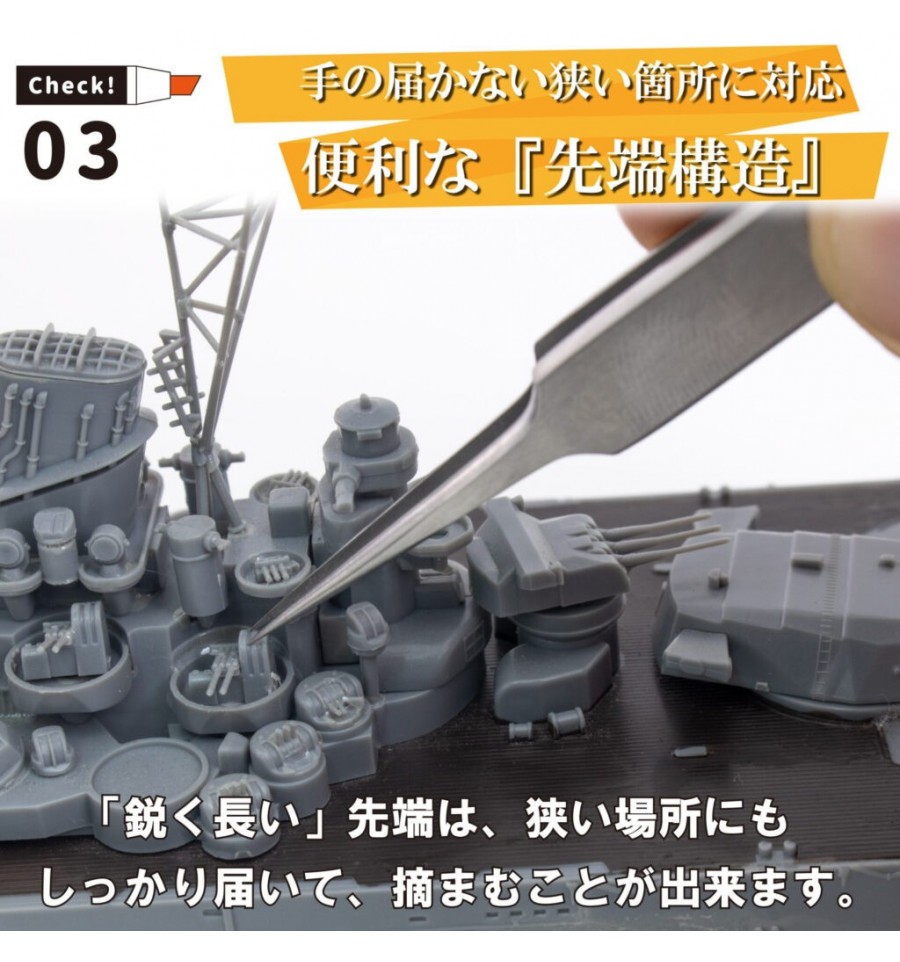 La punta afilada es adecuada para sujetar piezas extremadamente pequeñas y trabajar en espacios reducidos, lo que lo convierte en un producto ideal para una variedad de situaciones, incluida la construcción de modelos de plástico y manualidades hechas a mano.