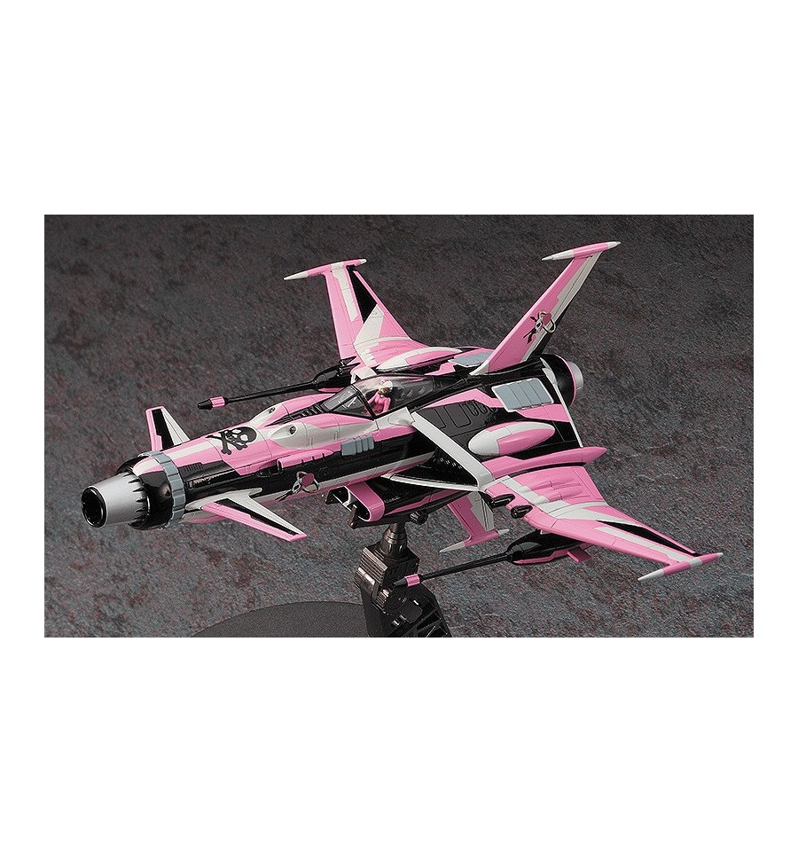 equipada con un cañón de retroceso dimensional tipo gunpod bajo el ala principal . El color es principalmente rosa, con un nítido patrón de pintura en blanco y negro que le da un diseño atractivo. Las piezas de la aeronave son rosas e incluye un soporte de exhibición.