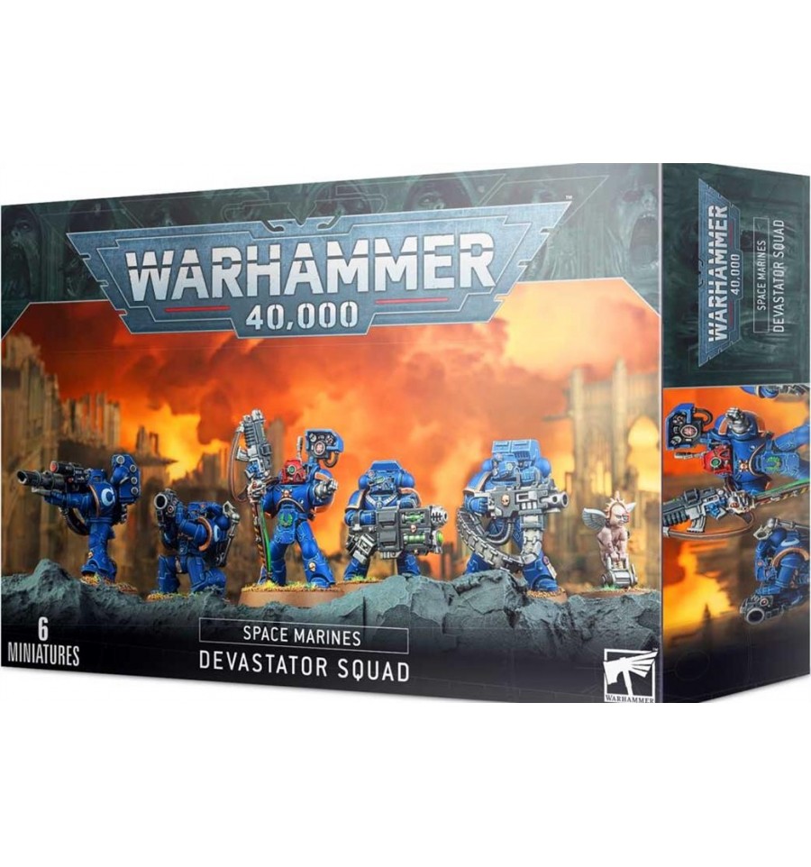 Tropas de apoyo que viven para hacer honor a su nombre, los Space Marine Devastators entregan el juicio del Emperador mediante impresionantes despligues de potencia de fuego. Los misiles se estrellan contra las filas de enemigos abriendo enormes cráteres de plasma en la tierra; los cañones láser atraviesan las defensas más gruesas y el atronador zumbido de los cañones grav se alza hasta alcanzar un terrible crescendo, conforme el objeto de la ira de los Devastators queda reducido a nada más que recuerdos y polvo.