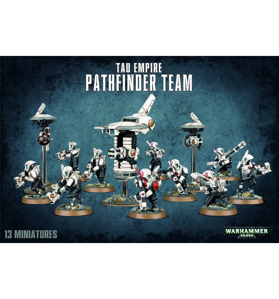 Los Pathfinder Teams son unidades de reconocimiento ligeras y se consideran los ojos y oídos de un Commander T'au de un modo que ningún Drone puede emular. La función principal de los Pathfinder Teams no es trabarse con el enemigo sino adelantarse al resto de sus camaradas y acercarse al enemigo para explorarlo con precisión.