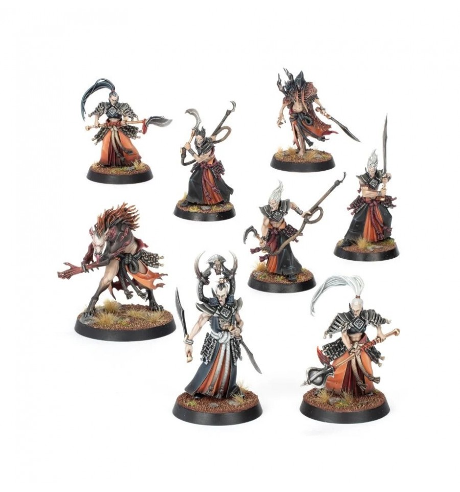 Este kit de plástico multicomponente construye una partida de guerra completa de Askurgan Trueblades, para usar en partidas de Warcry. Encabezados por un orgulloso Ejemplar de Askurgan, estos monjes vampiros solo visten una armadura ligera sobre sus túnicas flotantes, atados por pesadas cuerdas alrededor de la cintura. Cazan presas dignas con armas como hojas largas y curvas, hoces atadas con cuerdas y gujas y mazas pesadas, excepto aquellos que fallan en su disciplina, convirtiéndose en los bestiales Parias y Cursebloods. Estos modelos también se pueden usar como parte de un ejército de Soulblight Gravelords en juegos de Warhammer Age of Sigmar .