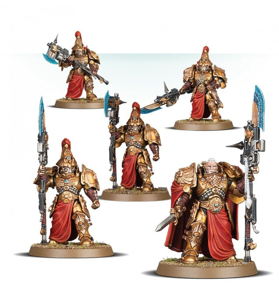 Además del Shield-Captain, este kit permite montar a 4 Custodian Wardens, o 3 Custodian Wardens y un Vexilus Praetor. Los Custodian Wardens también pueden armarse con hacha de castellano o lanza de guardián. El Vexilus Praetor lleva un espléndido vexilla ornamentado.
