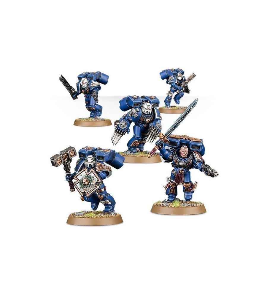 Los Veteranos de Vanguardia de los Marines Espaciales son especialistas en combate cuerpo a cuerpo que se despliegan como fuerzas de intervención rápida dotadas de una gran movilidad. Estos veteranos de la 1ª Compañía se lanzan al campo de batalla con sus propulsores de salto y blandiendo armas de combate que son verdaderas reliquias del Capítulo.