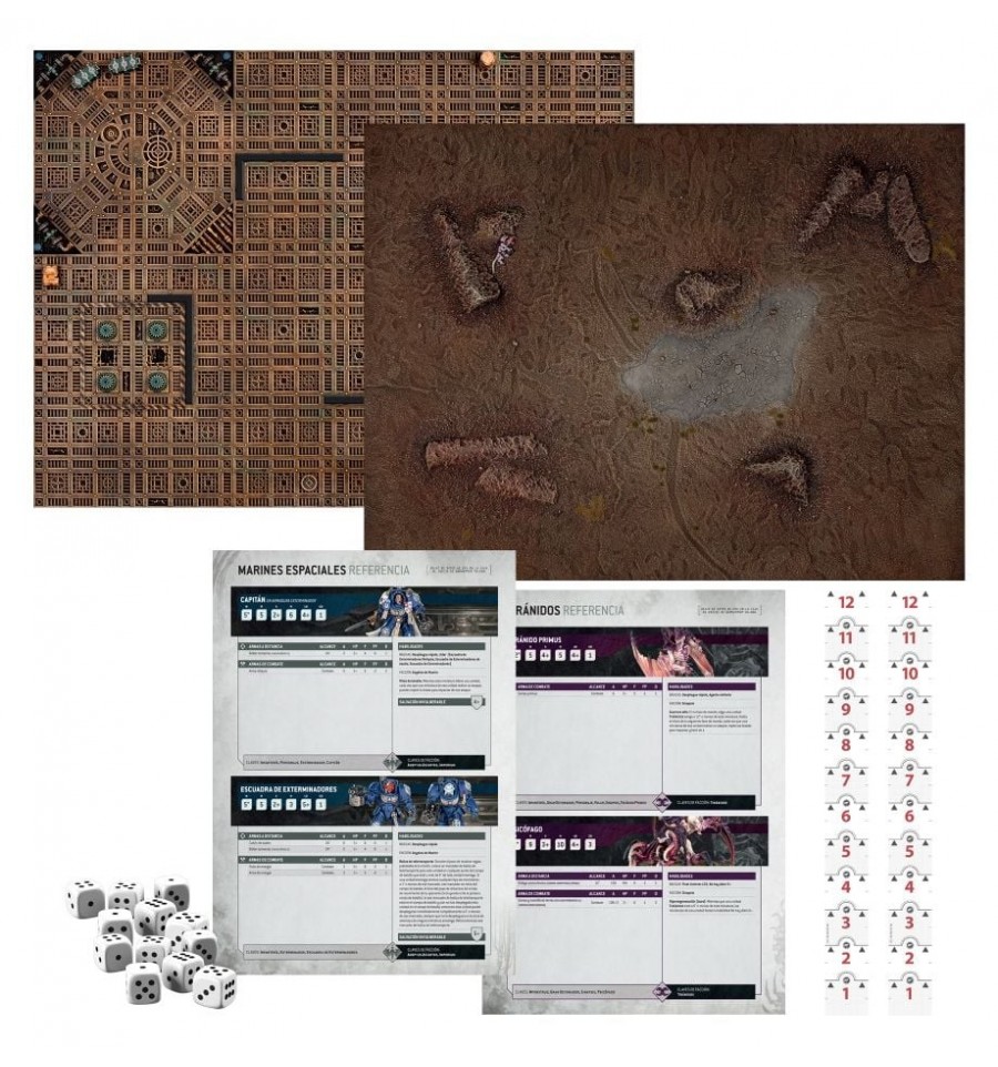 2 medidores de distancia y 10 dados de seis caras. Los accesorios esenciales para realizar acciones de movimiento, disparo y combate cerrado entre otros en tus partidas de Warhammer 40,000.